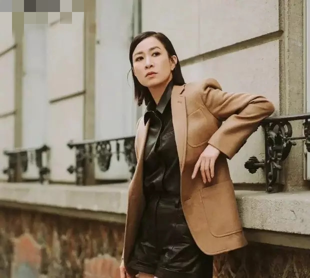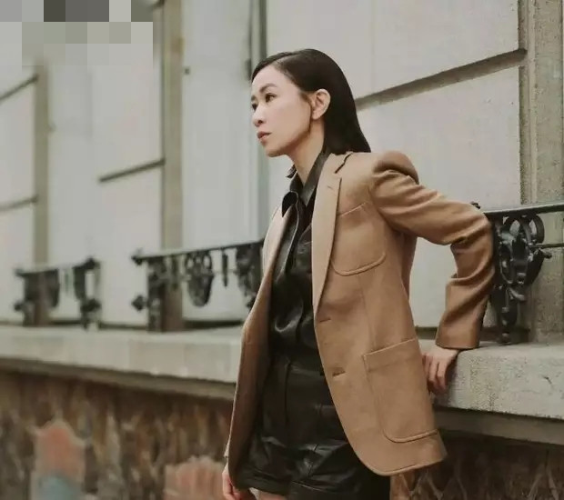 佘诗曼终于回归帅气路线了, 黑色短裤搭配土黄色西服秒变女王!
